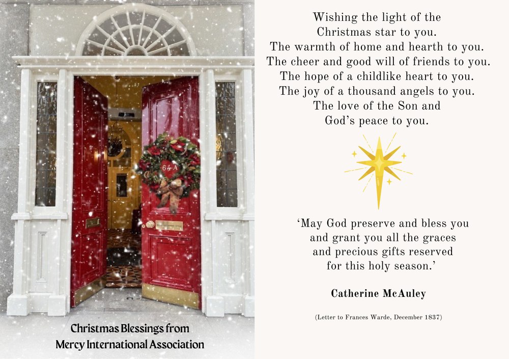 We send you Greetings and Baggot Street Blessings for a Happy and Holy Christmas and a Peaceful New Year from all of us at Mercy International Association.
