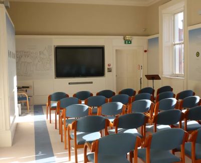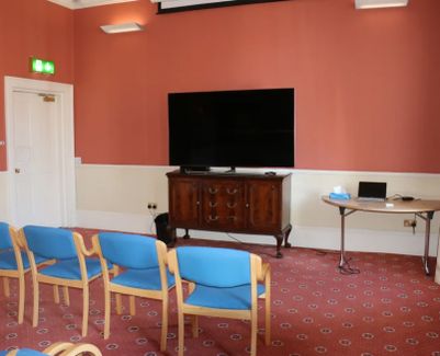 This room was originally the office used by Catherine McAuley, foundress of the Sisters of Mercy. The room is arranged in boardroom style with a large table and comfortable chairs. It is suitable for small meetings. Technology needs can be met upon request.