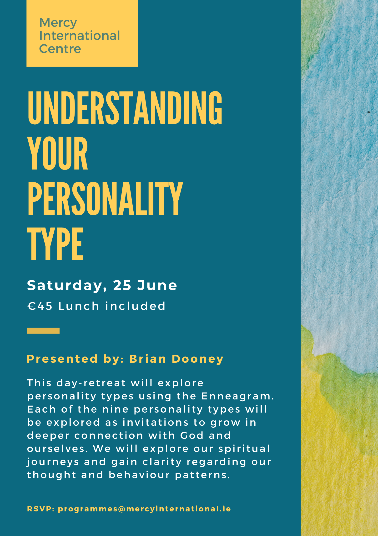 25 June Understanding Your Personality Type Retreat (day) with Brian Dooney. €45 including lunch.